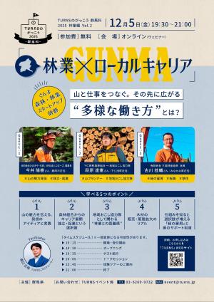 群馬県は、「ぐんま森林・林業スタートアップ研修」の第2回セミナーを12月5日(金)午後7時30分からオンラインで開催する。「林業×ローカルキャリア」をテーマに、合同会社ひのきや代表の今井陽樹氏、下仁