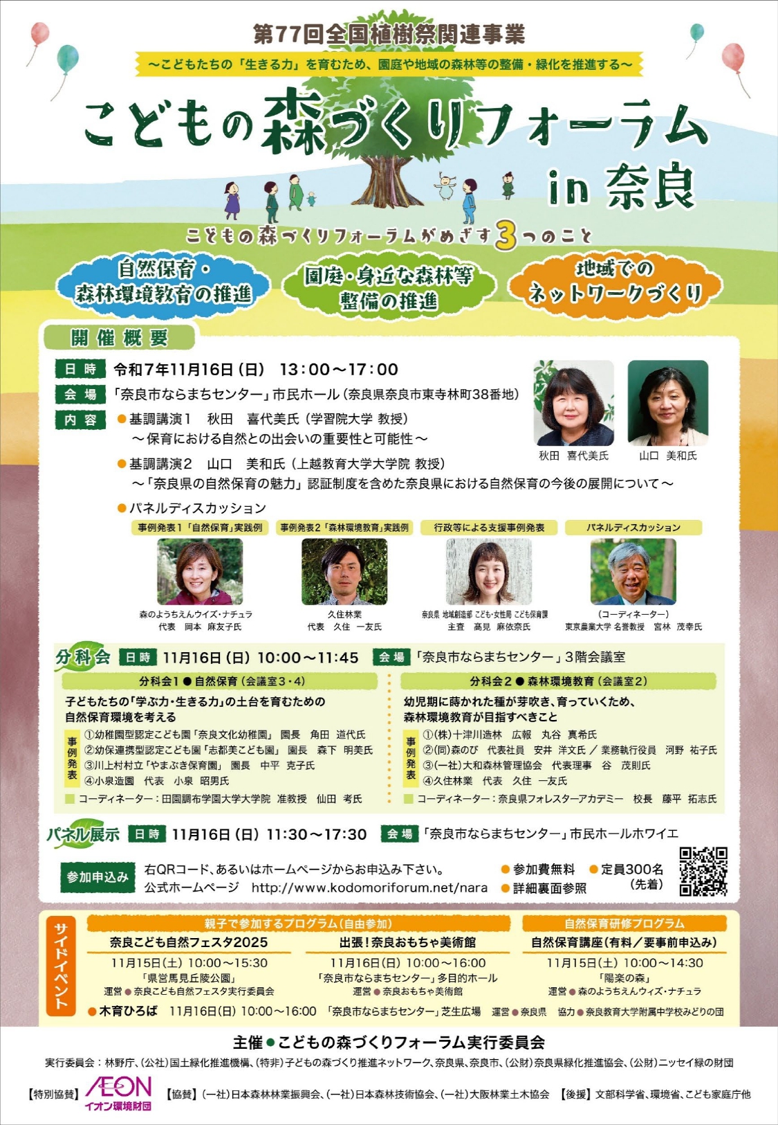 11月16日に「こどもの森づくりフォーラム in 奈良」開催