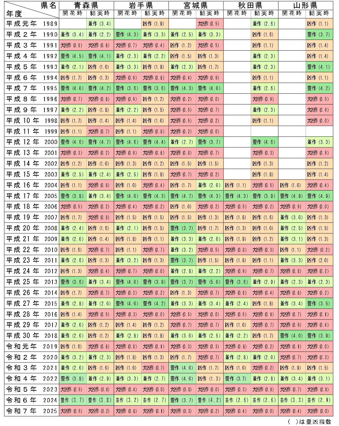 東北森林管理局は、クマの主食であるブナの実の今秋の結実状況を11月6日に公表した。管内(青森・岩手・宮城・秋田・山形の5県)の145か所で調査した結果、豊凶指数はいずれも1を下回り「大凶作」となって
