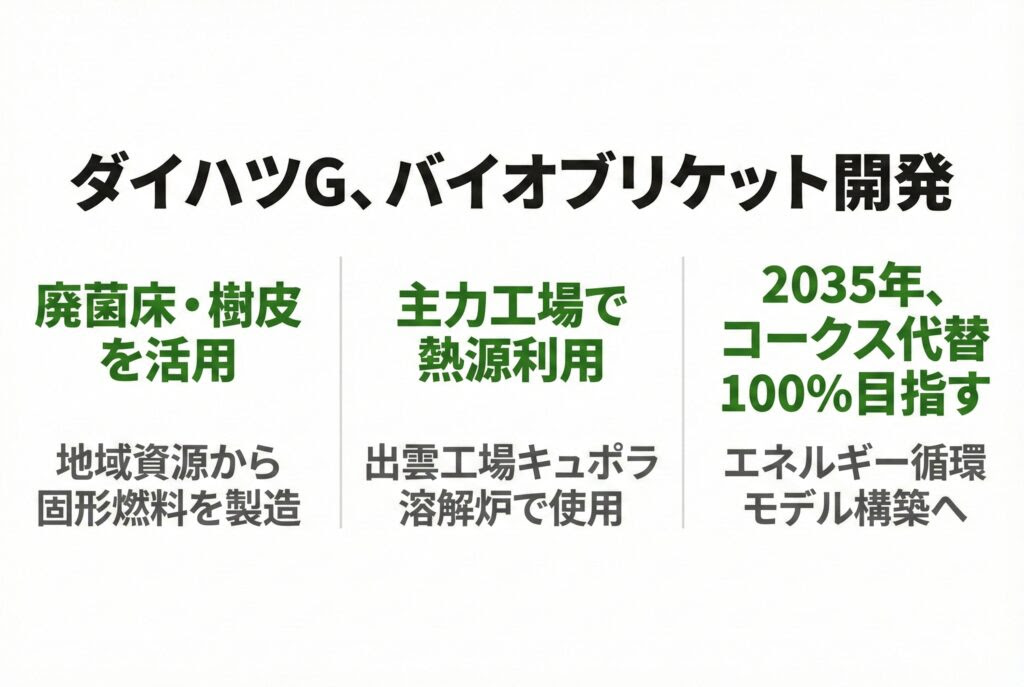 ダイハツグループが「バイオブリケット」を開発し、主力工場で使用