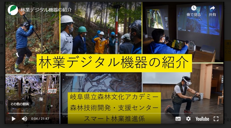 岐阜県立森林文化アカデミーは、研修などで利用している林業用のデジタル機器やICT機器を紹介する動画を制作し、公式YouTubeチャンネルで公開した。 約22分間にわたって、地上レーザ計測器や伐